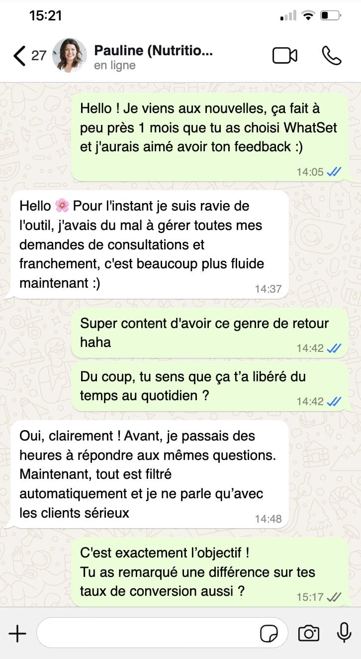 Bien sûr ! Vous pouvez prendre le relais à tout moment si vous voulez échanger directement avec un lead. WhatSet vous notifie en temps réel des prospects les plus chauds.